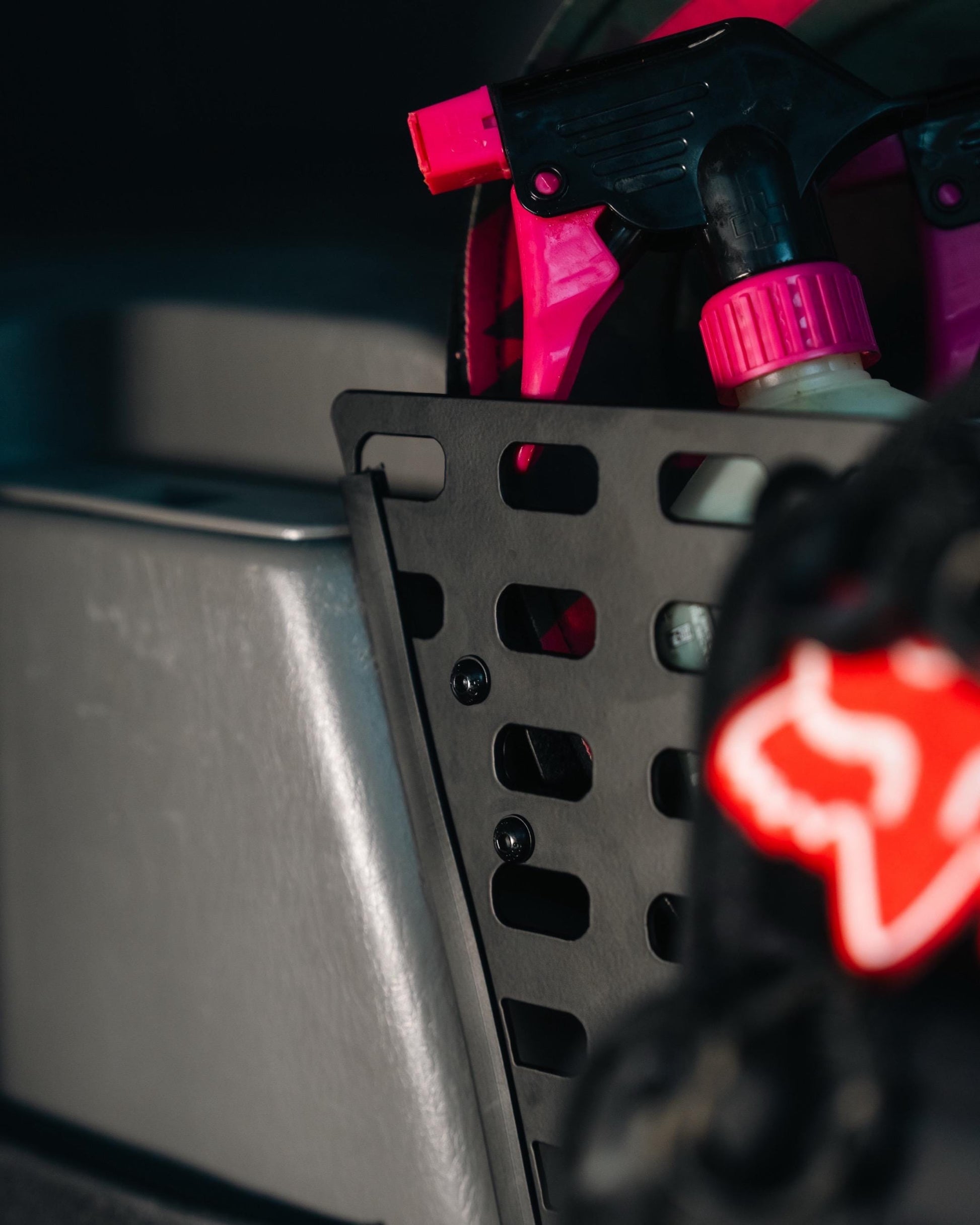 Built from high-quality steel and finished in a durable black powder coat, this insert is designed for years of off-road abuse. The modular slot pattern allows you to secure gear with straps, pouches, or clips — keeping everything locked down while you’re on the trail.